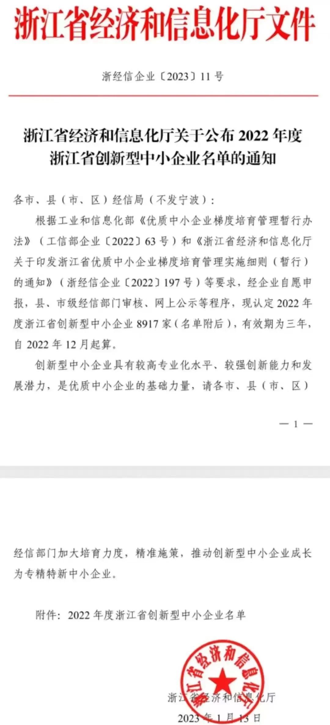 近日,浙江省經(jīng)濟(jì)和信息化廳公布了“2022年度浙江省創(chuàng)新型中小企業(yè)”名單,經(jīng)過(guò)公開(kāi)申報(bào)、經(jīng)濟(jì)和信息化主管部門(mén)初審?fù)扑]、專(zhuān)家評(píng)審、網(wǎng)上公示等極為嚴(yán)格的評(píng)審標(biāo)準(zhǔn)等程序。